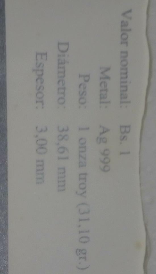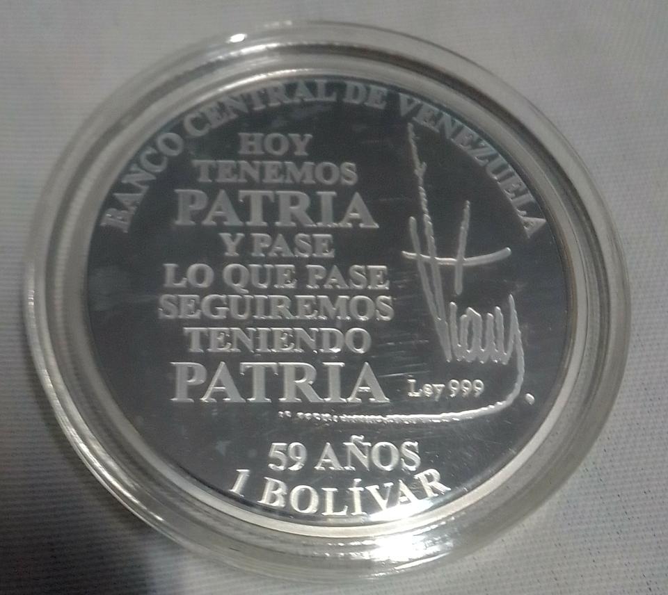 Moneda de plata de 1 Bolívar, peso 31 gramos. Precio: 80 USD. Interesados al 54752400