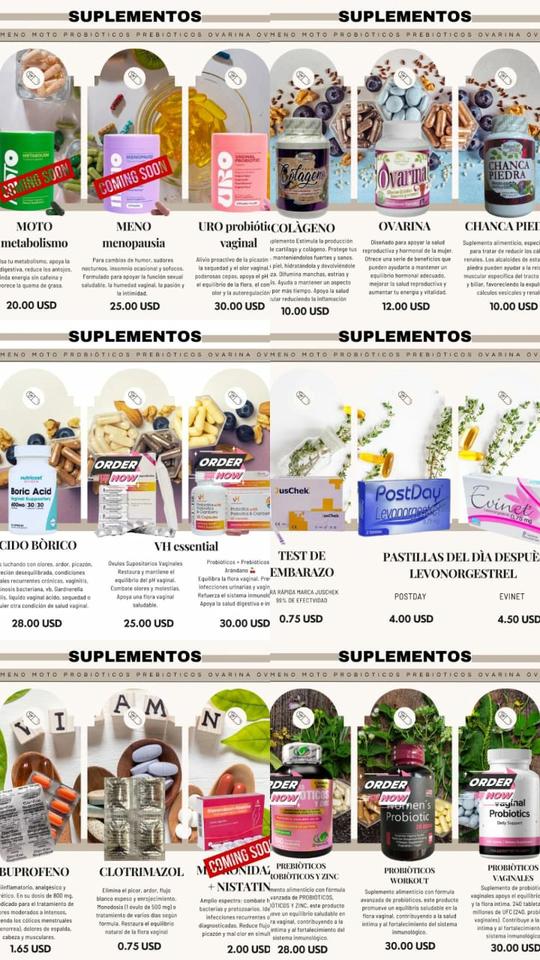 Salud femenina: probióticos, óvulos, ácido bórico y suplementos.