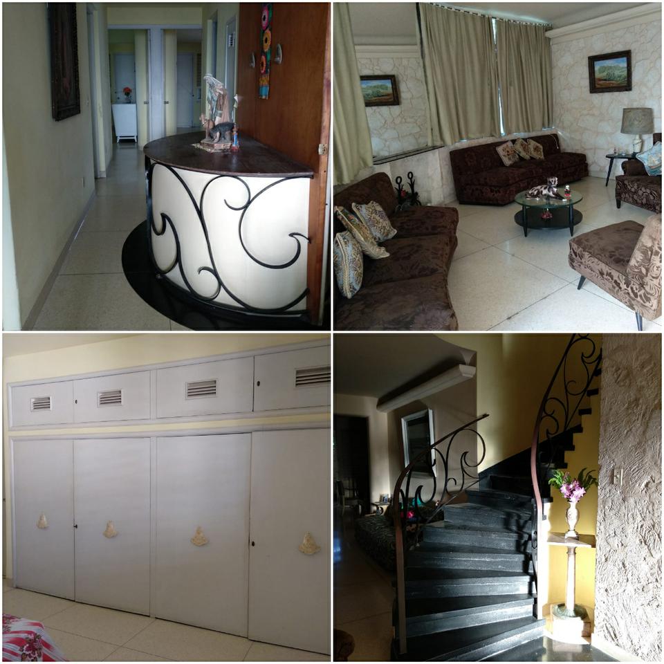 planta baja : Garage cerrado , portal , sala ,escalera al piso superior , baño de visita , saleta , biblioteca , comedor , cocina . pasillos laterales con lavaderos , cisterna de agua grande . pasillo al fondo techado con entrada directa al comedor