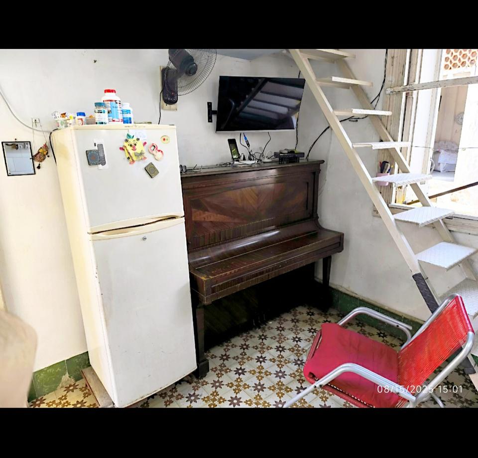 Apartamento pequeño 5000 usd, ubicado en una biplanta multifamiliar muy céntrica en calle B entre 23 y 21 en el Vedado, ideal para una pareja o para alquilar, arriba hay cuatro apartamentos, el nuestro es el del fondo y consta de cocina comedor, un baño, dos cuartos con piso de plycem y losa con acceso por dos escaleras de hierro, el cuarto de desahogo, el balcón y el patio son áreas comunes, tenemos tres tanques elevados dentro del baño aunque ponen el agua todos los días, se deja con todo dentro menos el piano y la laptop que se ve en la foto de uno de los cuartos, NO TIENE PAPELES pero si tenemos contrato del gas( gas de la calle), de la electricidad y libreta de racionamiento, no venga a dar consejos sobre como sacar propiedad,la saca usted y se le hace rebaja con dinero en mano, no quitan la corriente,tiene todos los hospitales a pocas cuadras,así como los agros las farmacias, escuelas etc...