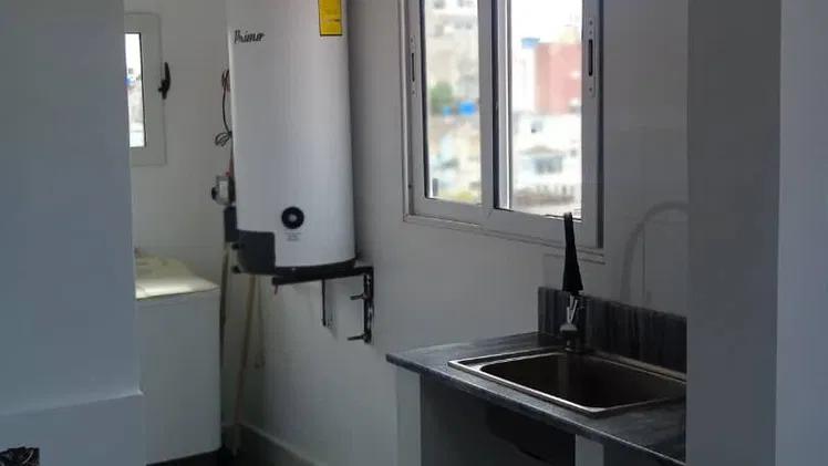 Se vende este apartamento construcción capitalista ubicado en la calle Espada y San José, cerca del parque Trillo. Se encuentra en el ultimo piso del edificio. 5to piso por escalera. Posee una vista increíble a la ciudad. Cuenta con sala comedor cocina concepto abierto, un dormitorio en suite con bano dentro, patio de servicio con instalación para lavadora y fregadero. Habitación con split y esta la instalación del aire para la sala también. Instalación de agua fría y caliente totalmente renovada, así como las instalaciones eléctricas. marquetería de aluminio toda nueva. Zona muy céntrica y tranquila de centro habana, cerca de infanta y san lázaro. Tiene dos tanques de agua propios. Actualmente de renta a extranjeros. Se puede vender completamente amueblado.