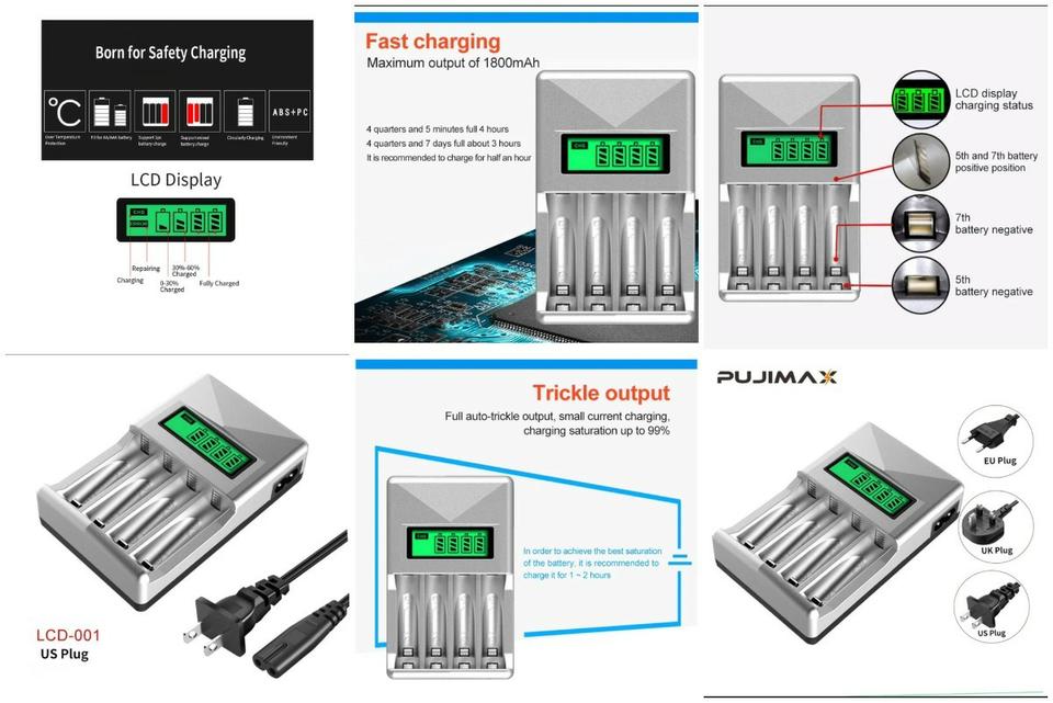 Cargador de pilas o batería inteligente con pantalla LCD