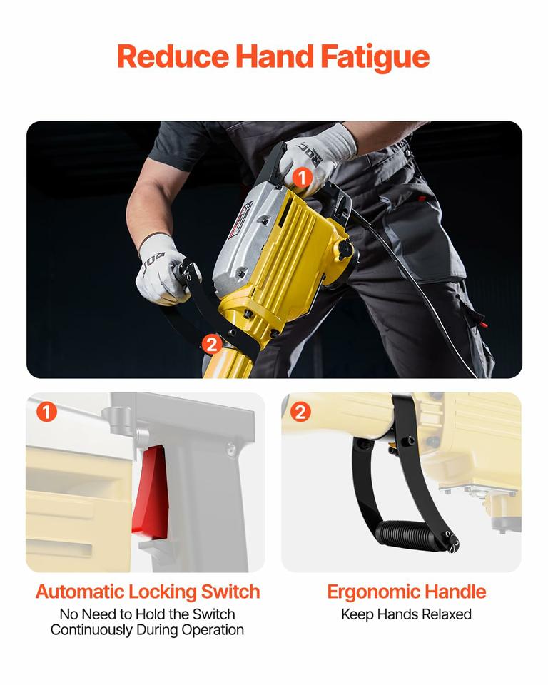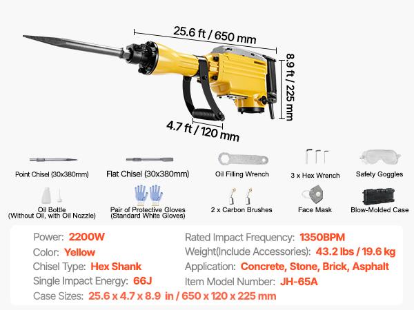 CHIPIJAMA / MARTILLO DE DEMOLICIÓN VEVOR 2200W 1350BPM 66J. - $300