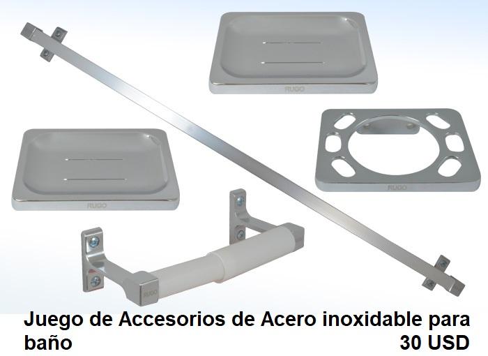 Juego de Accesorios de Acero Inoxidable para baño, acabado Cromo y Marca Rugo trae: Accesorios para baño, dos porta jabones, Porta cepillos, toallero Y porta papeles