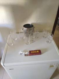 Vendo juego de 4 vasos old fashion 4 copas para vino 1 bolera juego de 10 cucharitas