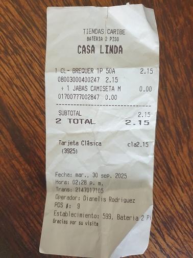 Se venden: Breaker de 50 amp. en 1000 cup sencillo, nuevecito, lo compre en Casa Linda (antiguo Tencent de Galiano) el 30/9, pero no me sirve, ya que necesito uno doble, adjunto vale de compra, interesados al 53033175.