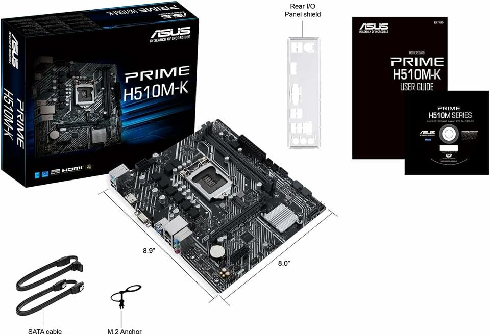 ASUS PRIME H510M-K Micro-ATX Placa base (Intel H510 LGA 1200 con PCIe 4.0, ranura M.2 de 32Gbps, Intel 1Gb Ethernet, HDMI, D-Sub, USB 3.2 Gen. 1x Tipo-A, SATA 6Gbps, puerto COM y conector RGB)