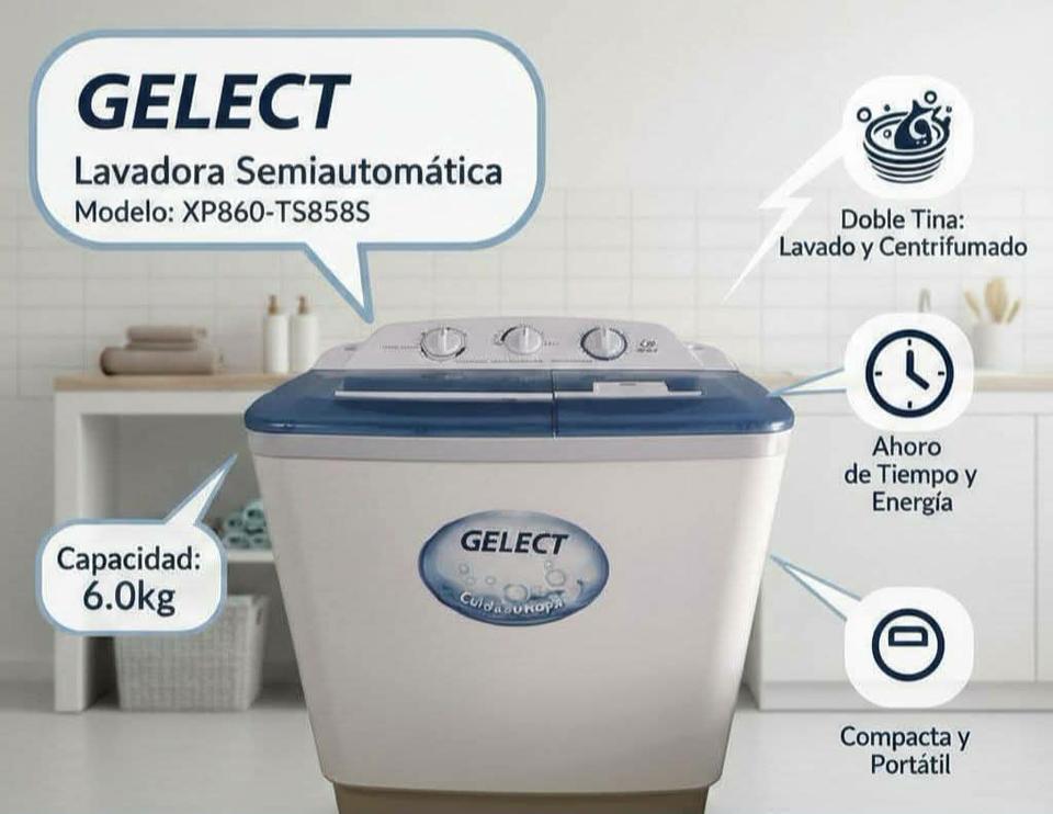 Lavadora marca Gelect Semi automática nueva en caja.... Modelo: XP860 - TS858S