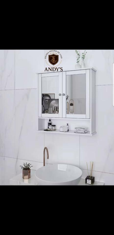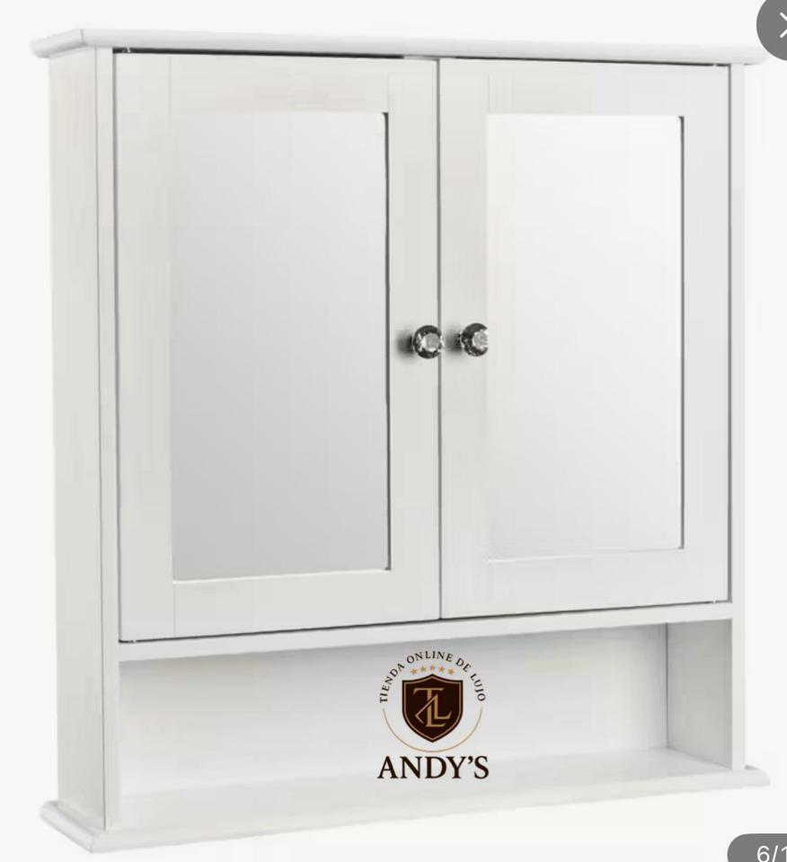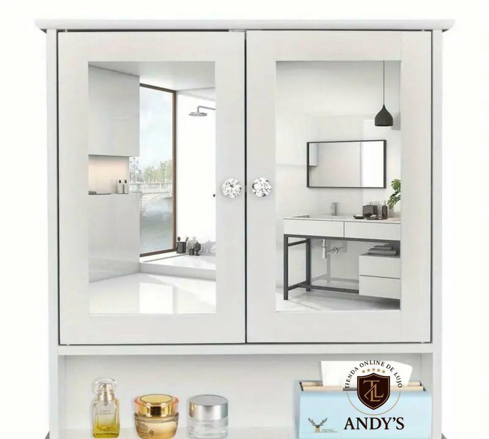 Gabinete o Armario clásico de pared para baño, medicamentos y más, 2 puertas de espejo rectangulares en cada puerta