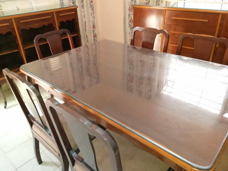 Venta de juego de comedor antiguo de madera de cedro y caoba, estilo inglés de los años 50, recién restaurado y listo para usar. Conformado por mesa (148x100cm), 6 sillas, aparador(162x47cm) y vitrina (134x47cm), las tres piezas con cristal transparente en la parte superior. Aparador y vitrina altura 107 cm. Aparador con llaves antiguas y la mesa con sistema original para extender por ambos lados.Precio por el juego completo 4000 USD. Interesados llamar al privado +53 55162887. Jorge, La Habana, Cuba.