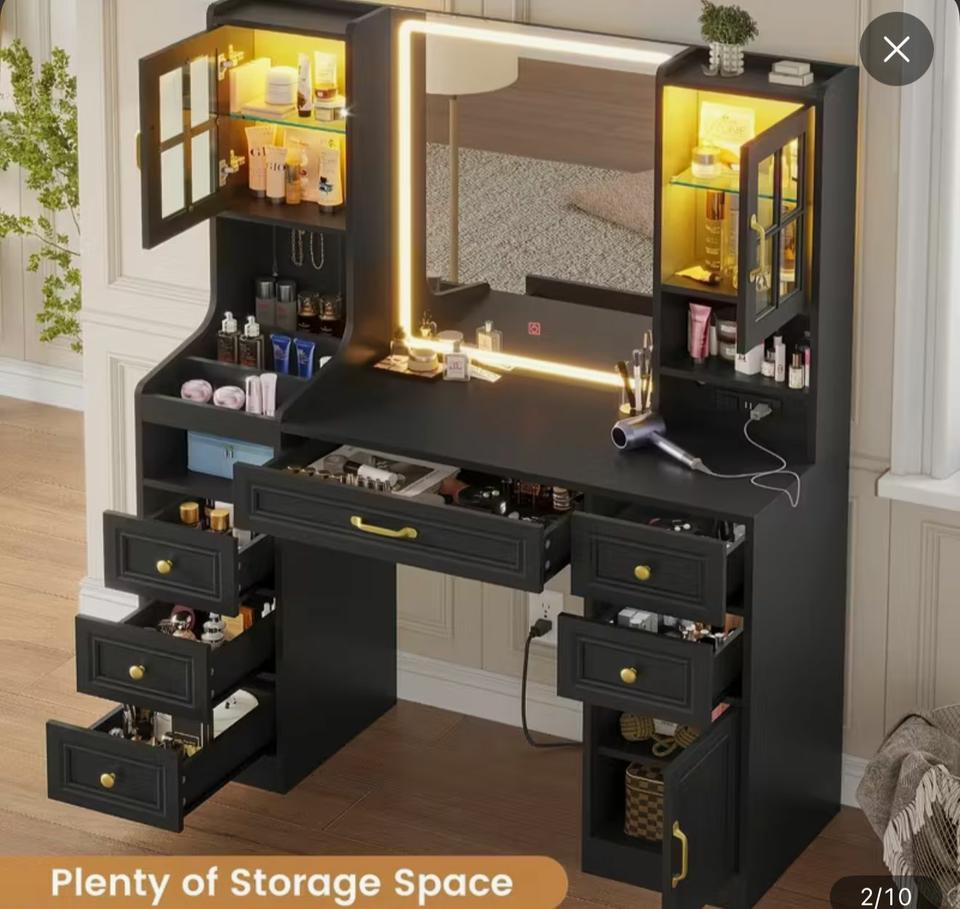 ➡️Mesitas de noche con luces led, mando y estación de carga.