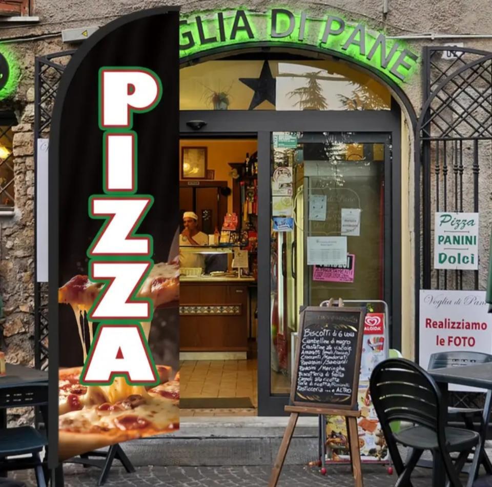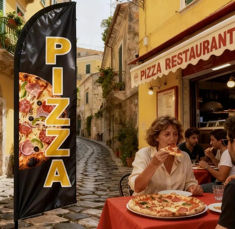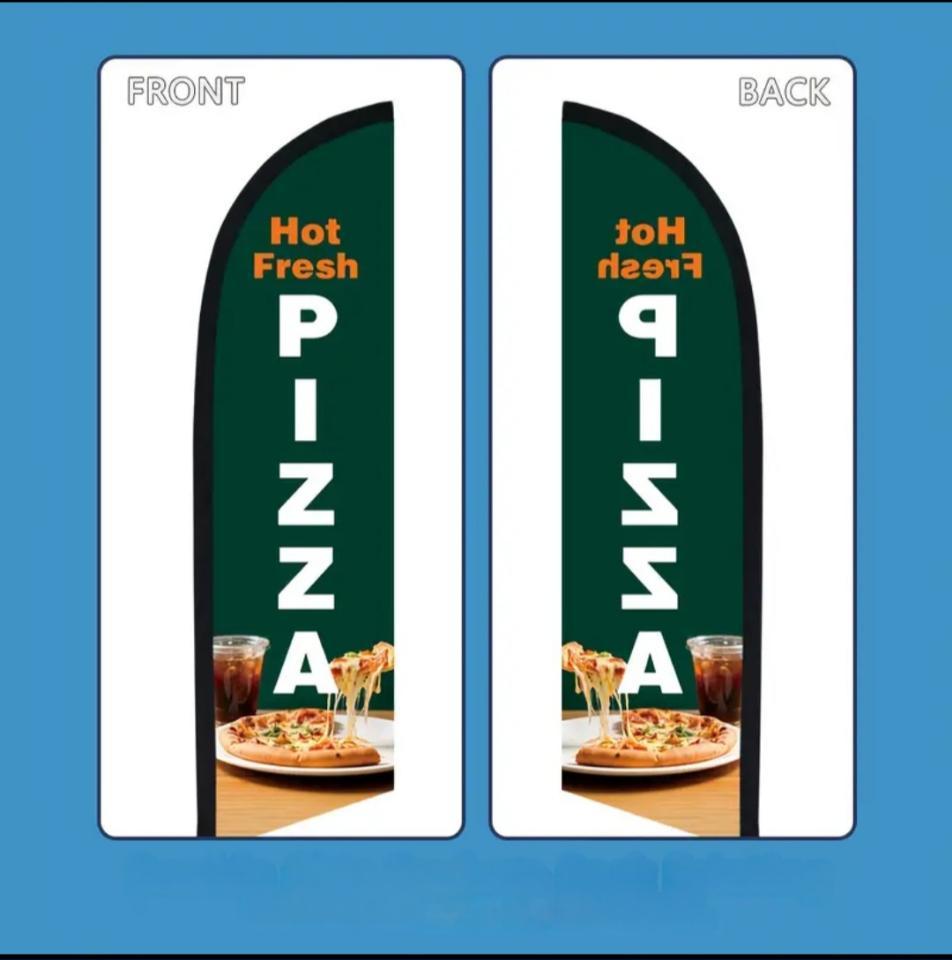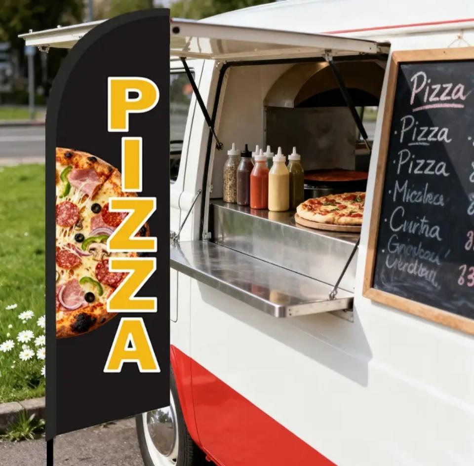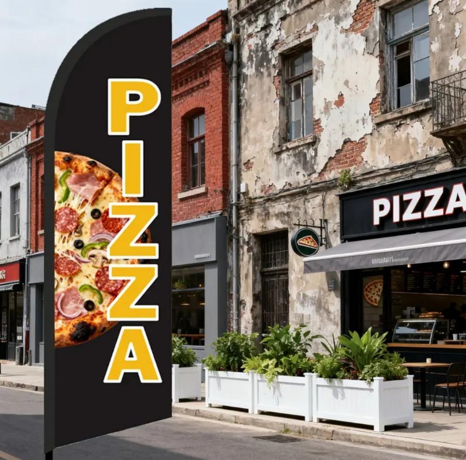 Banderas de identificación del servicio de pizzas.