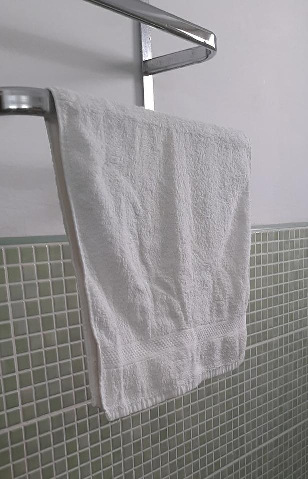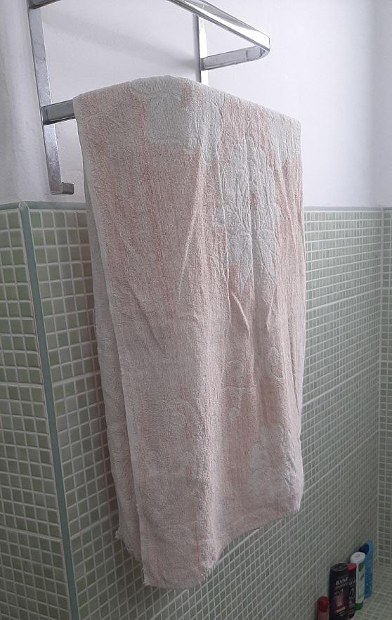 Toalla blanca y naranja claro 140 x 67 cm precio 1000 pesos