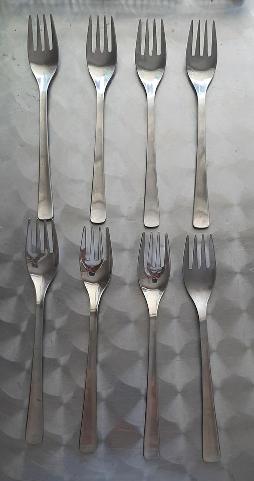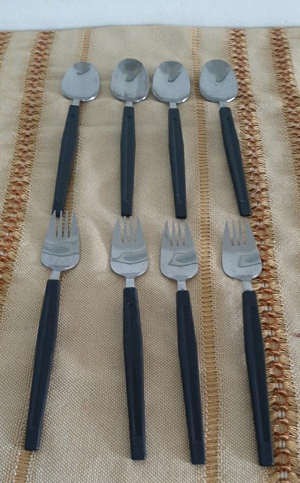 Cuatro cucharas y cuatro tenedores medianos negros 1600 pesos